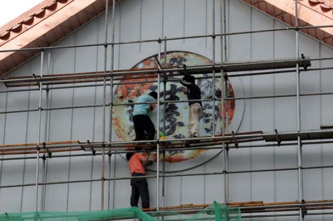 천진암박물관 아시바가 위에서부터 철거되면서 박물관의 웅장한 모습이 들어나 보이고 있다.08.06.07.현재