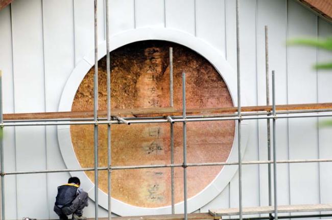 천진암박물관 아시바가 위에서부터 철거되면서 박물관의 웅장한 모습이 보이고 있다.08.06.07.현재