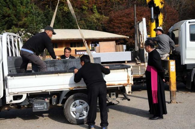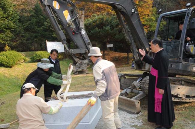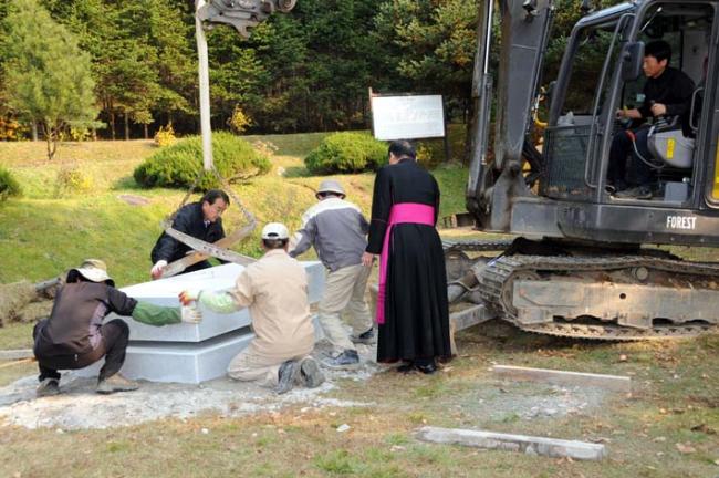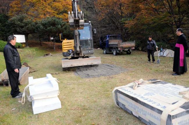 한국천주교회 창립성현 5위 묘역에, 천진암 성지와 한국천주교회 창립선조들에 관한 복자 요한바오로2세 교황의 공식 문서와 주요 강론 말씀을 새긴 비석이 세워졌다.(비석:가로 1500mm x 세로 1000mm X두께 350mm/좌대 3개/ 2011.10.28)