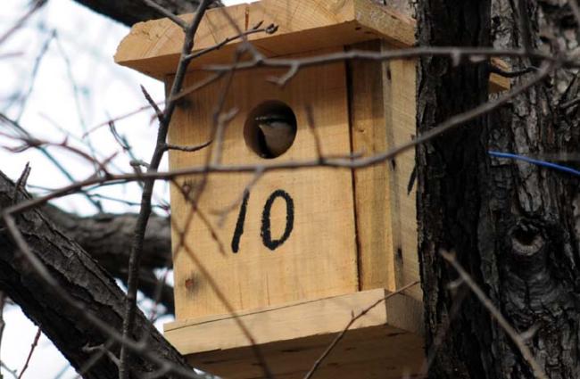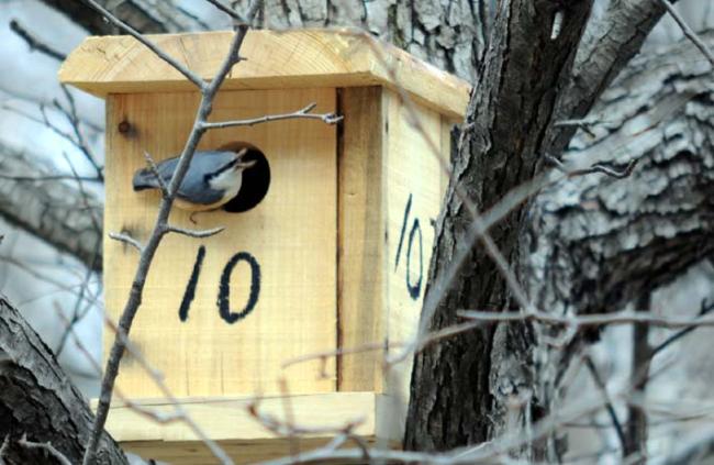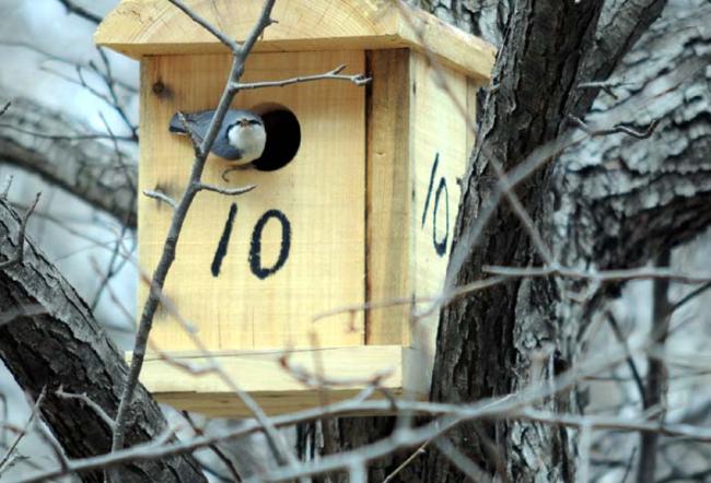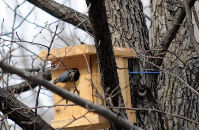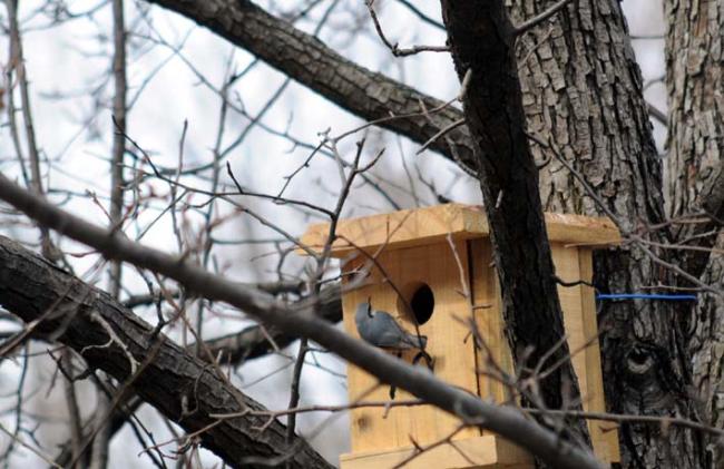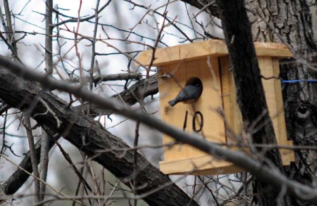 천진암 성지의 한국천주교회창립사연구소 마당 돌배나무에 아파트(새집)를 분양했더니, 입주자(새)가 와서 집을 살피고 있는데, 종류가 다른 새들이 교대로 드나든다. 어제는 배가 붉은 새였는데.(09.03.12)