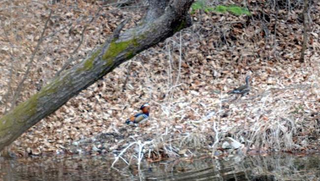 천진암 성지의 한국천주교회창립사연구소의 연못에 올해도 어김없이 찾아 온 원앙새 2쌍이 무공해 중태미들로 신선한 생선회 조반을 하며 고향에 온 것을 흐믓해하고 있다. (09.03.09)