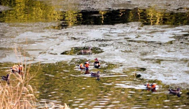 천진암 성지 빙천담에 찾아온 원앙새들의 귀향인사 모임이다.(09.03.12)