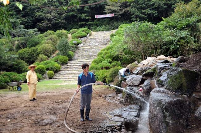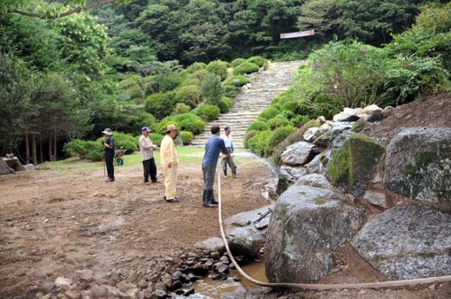 성역 내 빙천 샘 공사 현장: