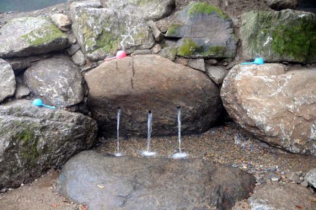 정약용 선생의 표현대로, 커다란 옹달샘 빙천(氷泉) 물이 지하로 스며서 나오는 암천([暗泉劣一線]의 분출구를 살려, 주변의 거대한 바위돌들로 보호하여, 이제는 24시간, 365일, 변함없이 흘러 나오는 분수구를 3개 만들어, 겨울에는 김이 나며 따뜻하고(영상 15도), 한 여름에는 얼음처럼 몹씨 차가운, 빙천수(氷泉)(영상 15도)로 오래오래 흐르는 샘이 되었다. 이 빙천의 암천수는 이벽성조와 젊은 소년들이 1770년부터 1784년 봄(4월 중순)까지 마시던 뜻깊은 샘물이다. 상류 약 50m ~ 100m ~ 250m 지점의 바위 틈으로 흐르는 계곡물이 땅 속 바위 틈으로 새어 흐르는 물이다.