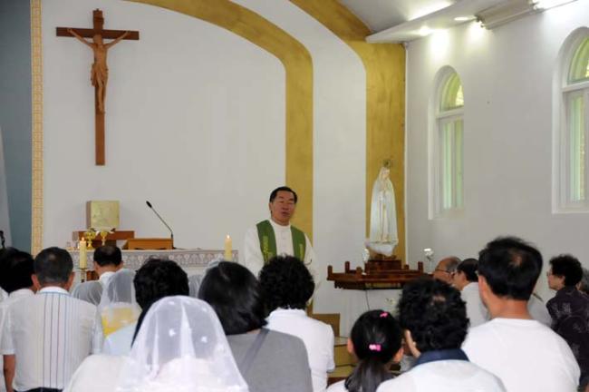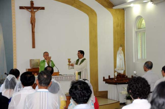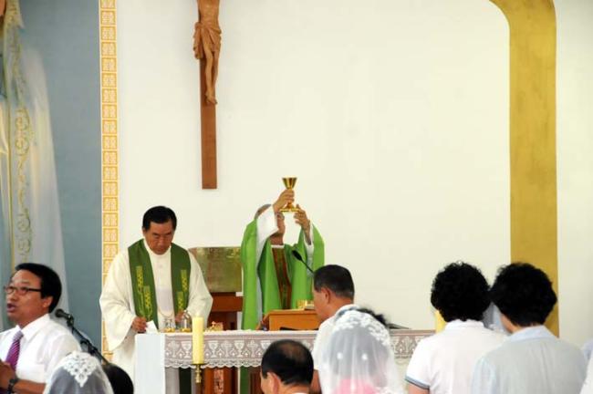 문도공 요한 정약용 승지 탄생 250주년 기념 詩文碑 제막, 축성(천진암박물관, 2012.08.05)후, 낮12시 주일 순롁객 기념미사(김학렬 신부님 주례)