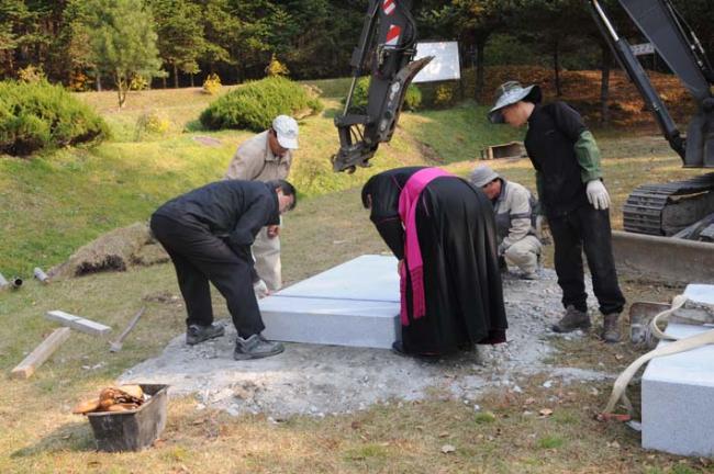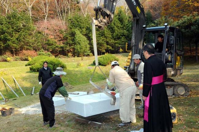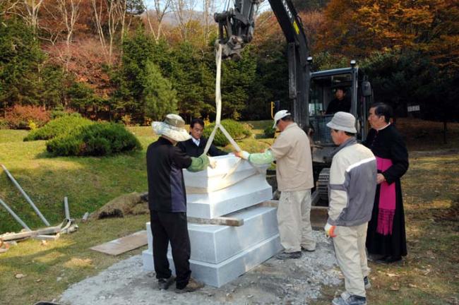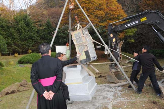 한국천주교회 창립성현 5위 묘역에, 천진암 성지와 한국천주교회 창립선조들에 관한 복자 요한바오로2세 교황의 공식 문서와 주요 강론 말씀을 새긴 비석이 세워졌다.(비석:가로 1500mm x 세로 1000mm X두께 350mm/좌대 3개/ 2011.10.28)