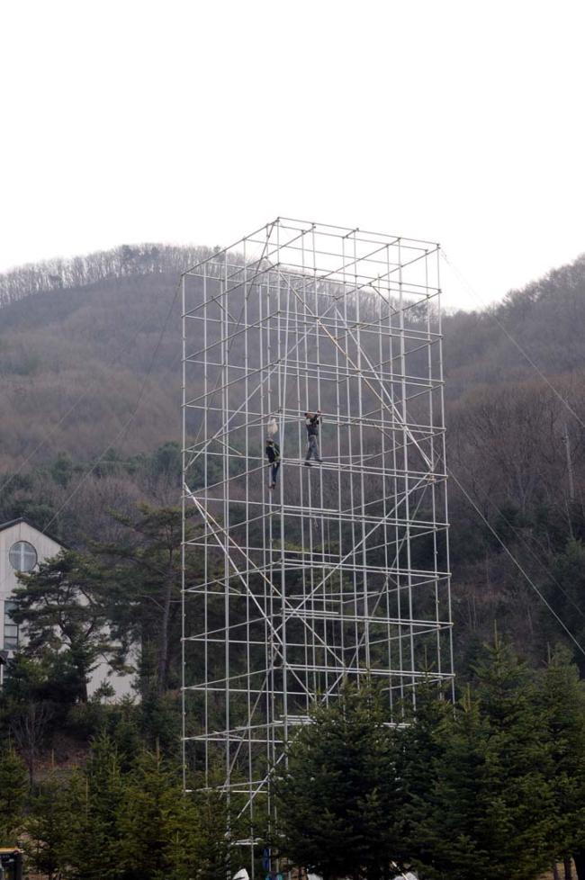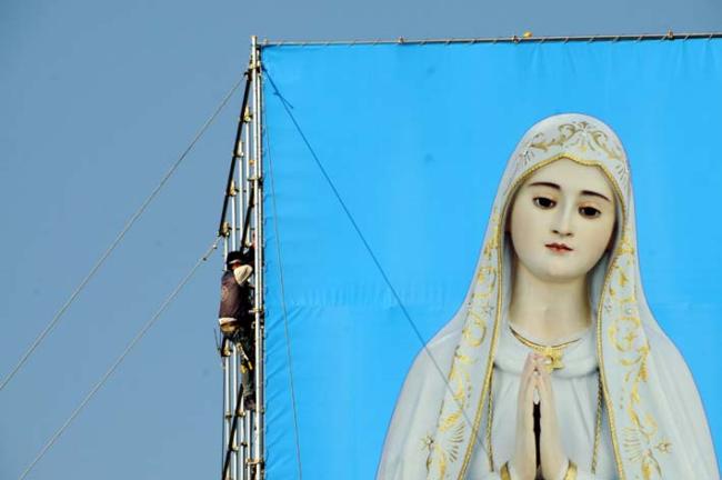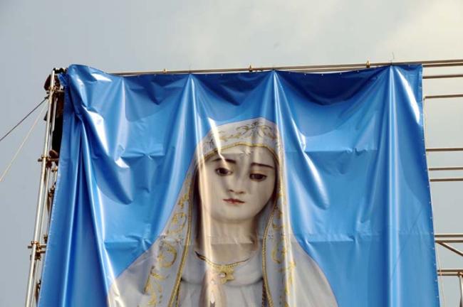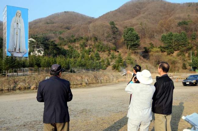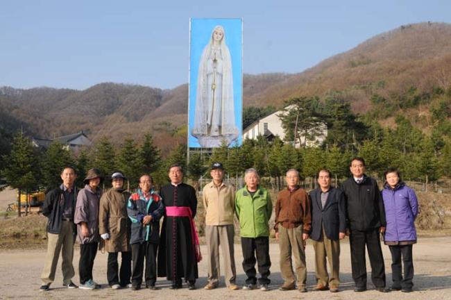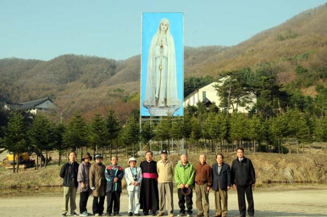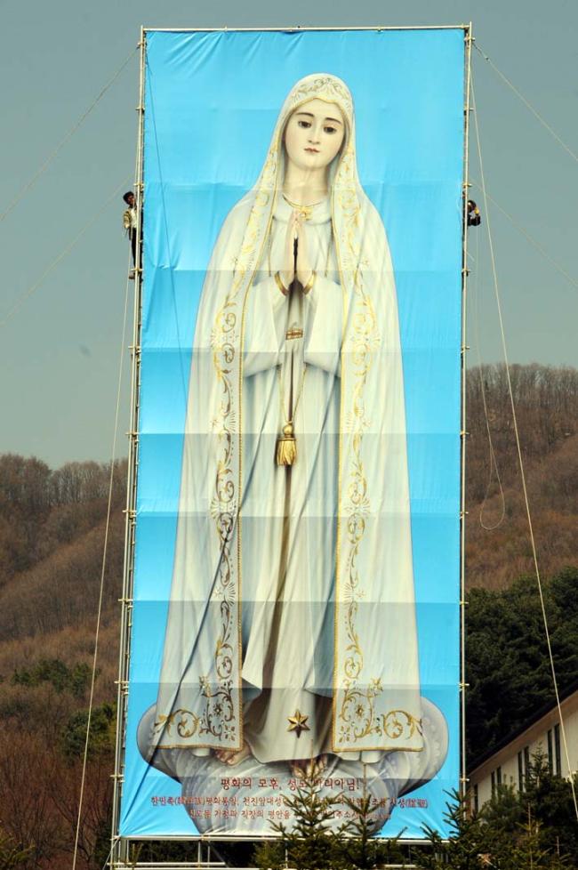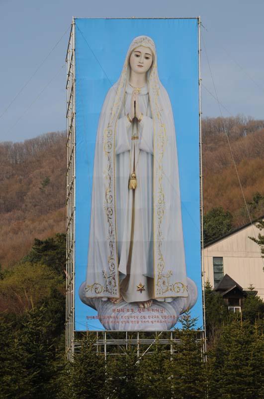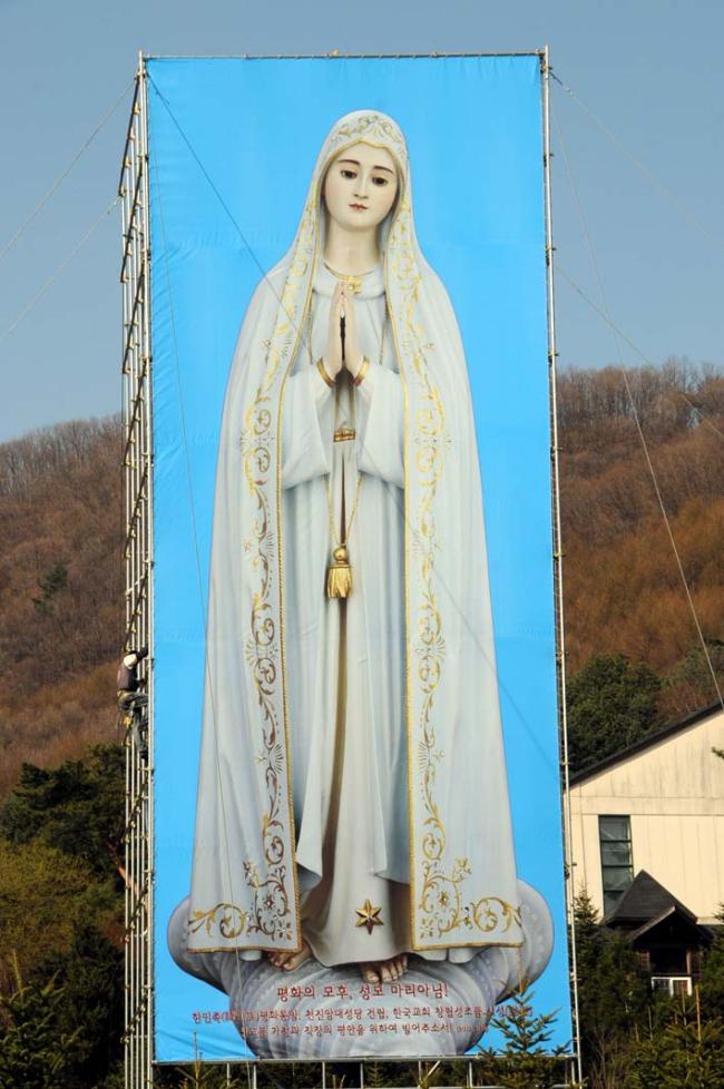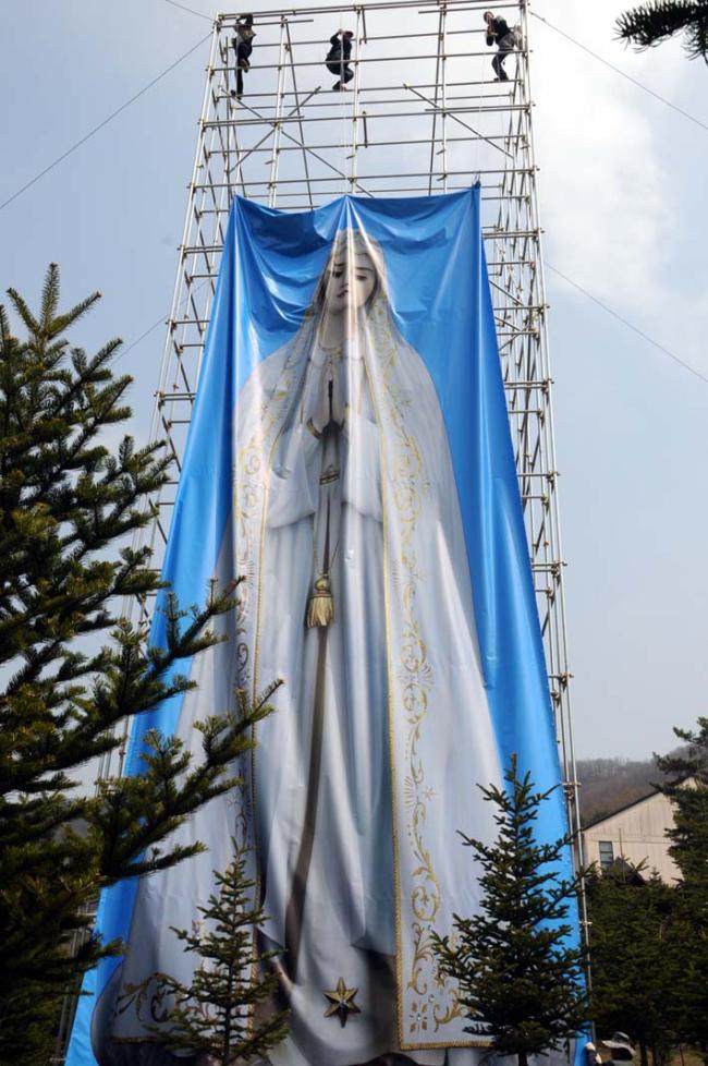평화통일 기원을 위한 무신론극복의 파티마 발현 성모상을, 평화의 모후 청동성모상 건립(좌대높이 5m, 성모상 높이 15m)을 위한 본보기로 삼고자, 미리 사진판(6m x 20m 높이의 철골 가설대에, 폭 6m에 높이 15m 순수 성모상 사진판)을 제작하여 부착하고, 다각도로 청동성모상 제작 자료검토 준비 시작...(2012.04.16)(아시바 공사중)