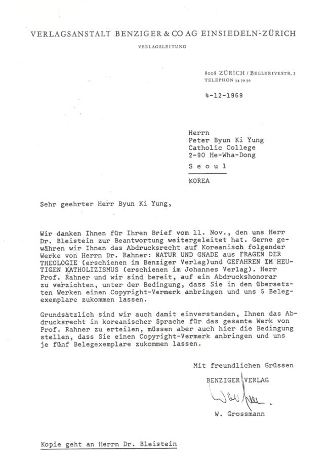 칼 라너 저, 오늘의 인간과 종교 번역, 1969년 발행.
