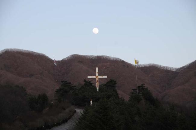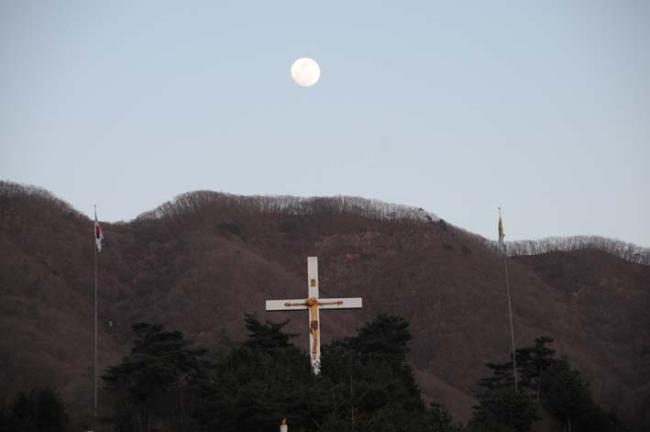 천진암 성지, 십자가 바로 위에 달이 뜬 모습(2012.04.05), 오후 6시 46분