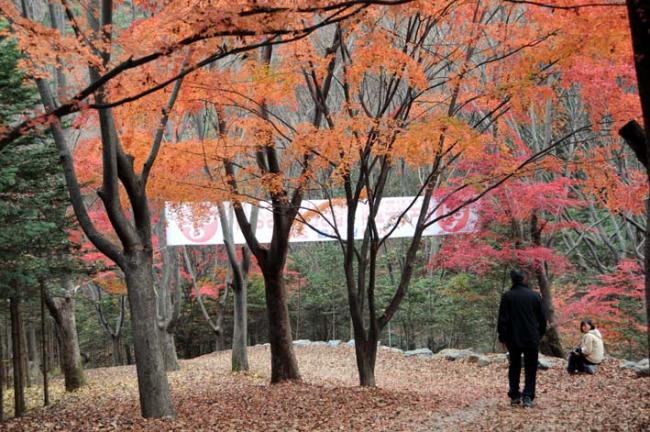 천진암 성지, 한국천주교회창립성현 5위 성현 묘로 올라가는 강학로의 단풍(2011.11.05)성역로를 덮어가는 낙엽은 천상에 계신 우리 선조들이 미리 보내오는 늦가을 엽서인가, 성탄카드인가, 아니면 지난 여름 다녀간 순례자들이 벌써 보내오는 연하장인가?