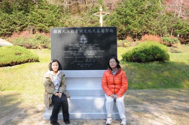 천진암 성지와 한국천주교회 창립성조들에 관한 복자 요한바오로 2세 교황의 공식선언문과 강론 원문 및 번역문이 조각된 기념 비석. 2011.11.01)