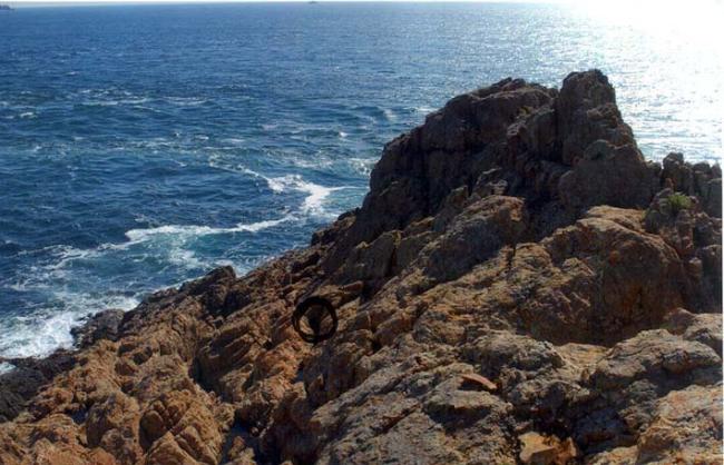 황경헌(황사영과 정명연의 아들, 당시 2세)을 내려놓았던 추자도의 황새바위(표시한 곳이 황경헌이를 내려놓았던 장소)