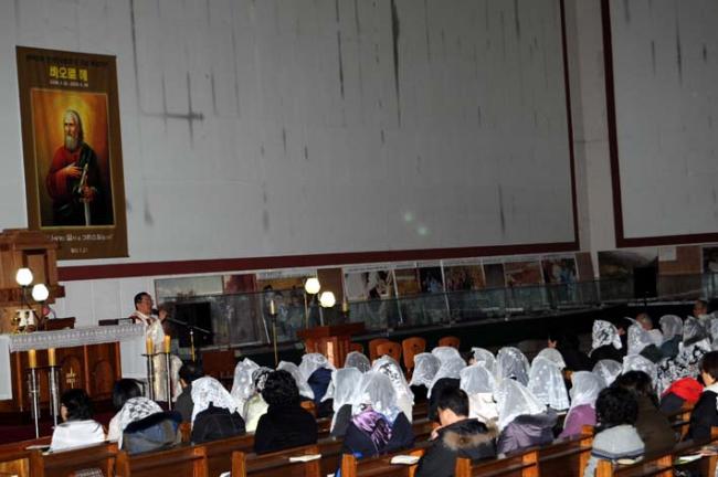 전남, 진월동 성당 40명 천진암 성지순례시 12시 순례객 미사(09.03.16.월)