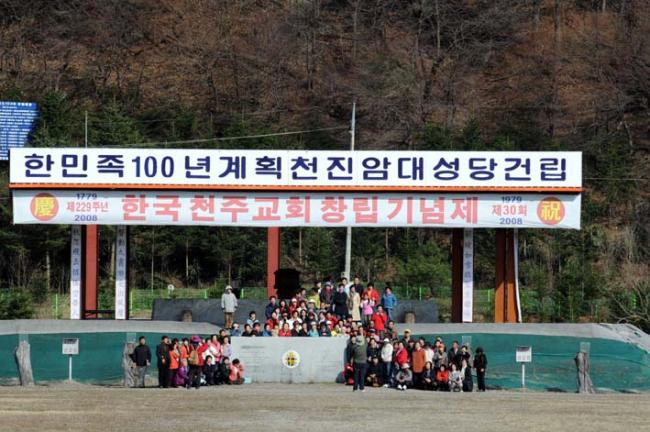 전 세계 모든 나라의 천주교회가 대부분 다른 나라 선교사들의 전도로 시작되었으나, 우리나라 천주교회는 1779년에 이벽, 권일신, 정약종, 권철신, 이승훈 등 당시 저명한 학자들에 의해서 시작되었으니, 학문적 지식의 수준에 있던 천학(天學)을 천진암에서 자발적인 진리탐구를 위한 6,7년간의 강학회(講學會)를 통하여 종교적인 신앙의 차원인 천주교회로 승화, 발전시켰으며, 그 현장이 바로 천진암 성지이다. 어느 나라에도 자기네 나라 천주교 발상지는 없으니, 천진암 성지는 한국 천주교회에만 있는 자랑스럽고 거룩한 성지이다. 여기에 소개되는 사진들은 천진암 성지 직원들, 주로 허관순 세라피나 편찬실장이 찍어서 올린 것입니다 |