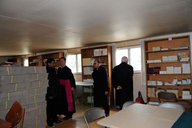 주한 교황대사 오스발도 파딜랴 대주교님, 참사관 비서 신부님, 함제랄도 신부님 외 대사관 전 직원 10명 성지 순례시 성모경당에서 12시 순례객 미사 봉헌(09.04.16. 금, 200여년 전에 이벽성조께서 독서하던 [독서처]를 변기영 몬시뇰이 안내하며 설명하고 있다.