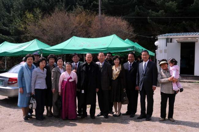 주한 교황대사 오스발도 파딜랴 대주교님, 참사관 비서 신부님, 함제랄도 신부님 외 대사관 전 직원 10명 성지 순례시 성모경당에서 12시 순례객 미사 봉헌(09.04.16. 금, 점심식사주에 이승훈 성현 6대손 이병림 할머니와 권철신 후손 권혁훈 회장 소개).