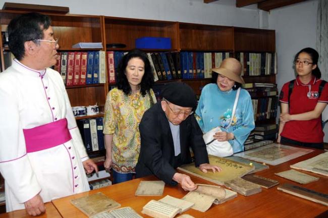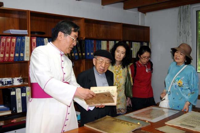 서울대교구 정의채 몬시뇰(대통령 자문위원) 외 3명, 천진암 성지 순례(2011.08.03), 한국천주교회창립사연구원 2층에 있는 고문서 열람