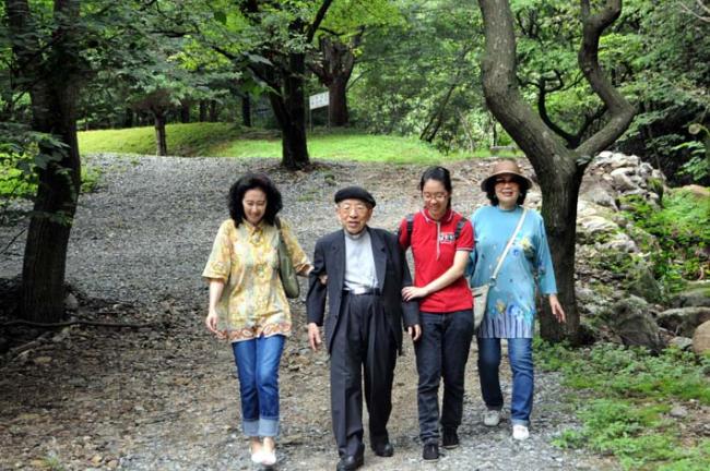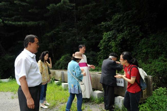 서울대교구 정의채 몬시뇰(대통령 자문위원) 외 3명, 천진암 성지 순례(2011.08.03), 천진암박물관 마당에서 자연생수를 드시는 모습.