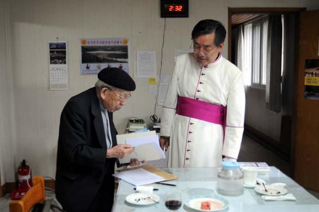서울대교구 정의채 몬시뇰(대통령 자문위원) 3명, 천진암 성지 순례(2011.08.03), 한국천주교회창립사연구원 2층에 있는 고문서 열람(창립성현들 유해)