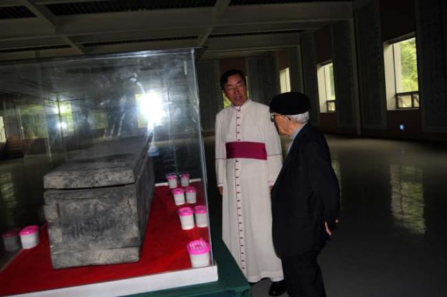 서울대교구 정의채 몬시뇰(대통령 자문위원) 외 3명, 천진암 성지 순례(2011.08.03), 천진암박물관 2층에 있는 200여 만에 발견된 권일신 성현 관 설명.