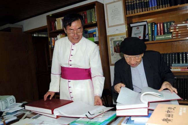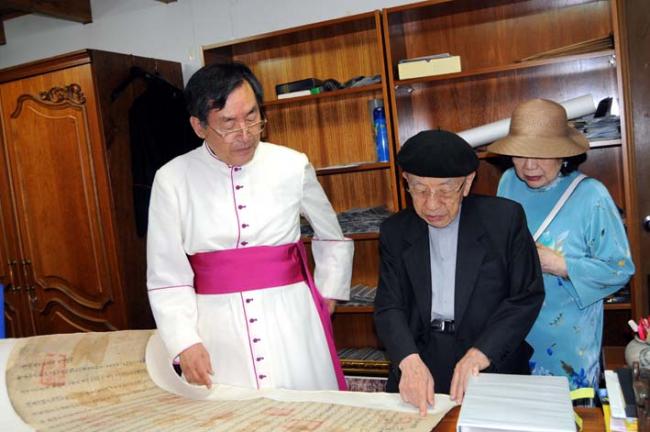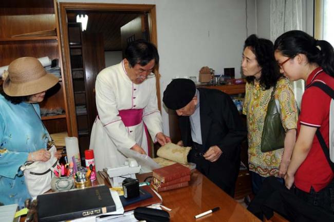 서울대교구 정의채 몬시뇰(대통령 자문위원) 외 3명, 천진암 성지 순례(2011.08.03), 한국천주교회창립사연구원 2층에 있는 고문서 열람