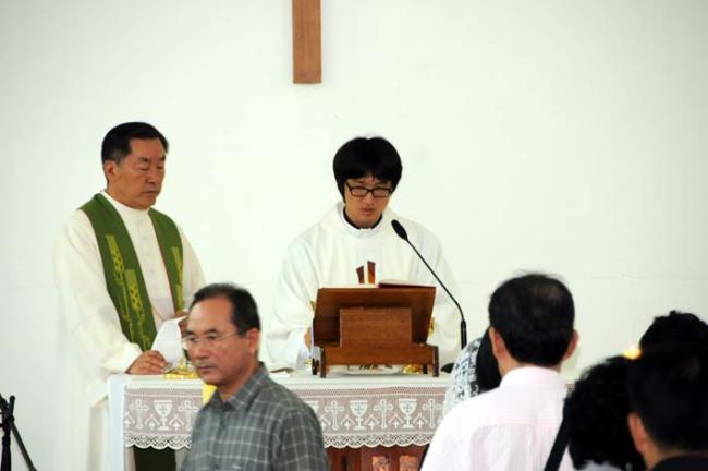 춘천교구에서 7월 5일 사제로 새로 서품 받은 김도형 스테파노 신부님이 천진암 성지 광암성당에서 8월 21일 낮 12시 주일 순례자들을 위한 첫 미사를 봉헌하고, 첫 강복을 주고 나서, 교우들과 옥수수, 고구마, 콩설기 떡, 등으로 소박하고 즐거운 점심을 하였읍니다.