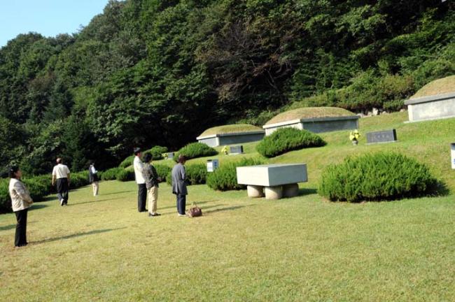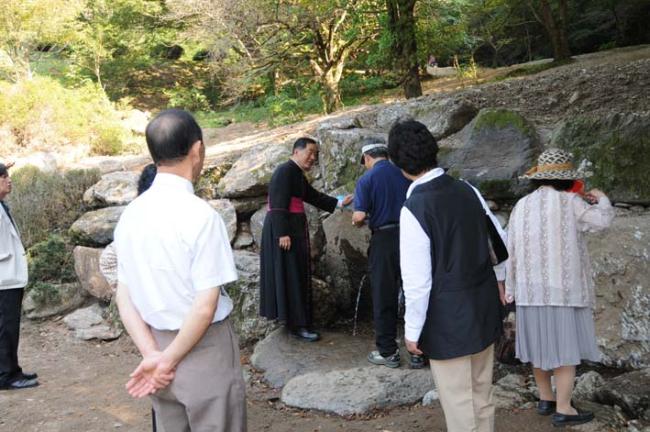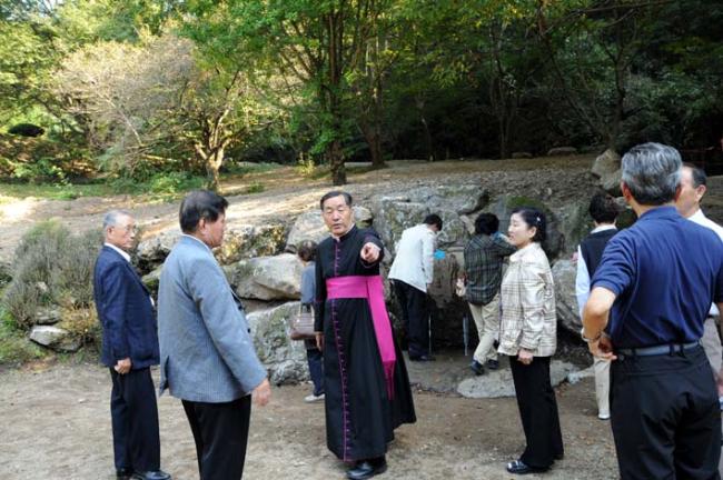 천진암 성지, 순례객 12시 미사후 한국천주교회 창립성현들 후손들 묘역 참배(구미 상모성당 박재진 신부님 버스 5대 180명 외)2011.09.25.일