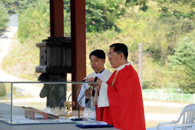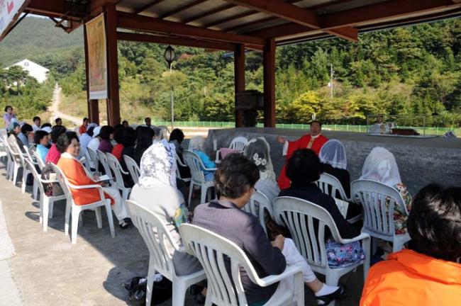 천진암 성지, 순례객 12시 미사(구미 상모성당 박재진 신부님 버스 5대 180명 외)2011.09.25.일