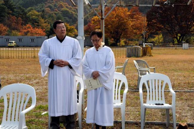 천진암성지, 대성당 터에서 주일 낮 12시 순례자 미사, 2011.10. 23(미국 정진욱 박사 부부 참석)