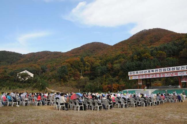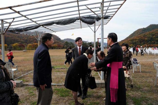 천진암성지, 대성당 터에서 주일 낮 12시 순례자 미사, 2011.10. 23.(미국 정진욱 박사 부부 참석, 권철신,권일신 후손 권혁훈 회장)