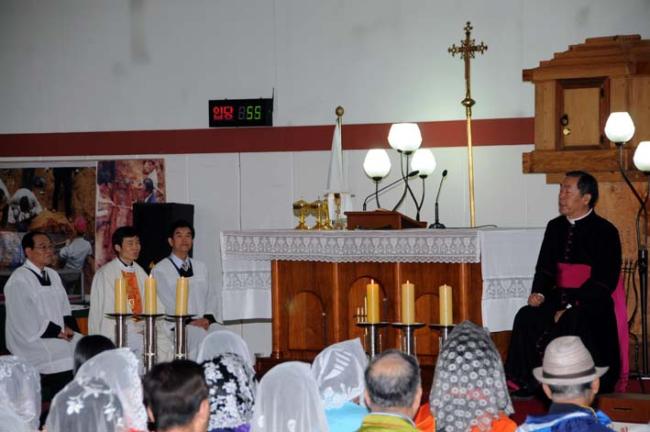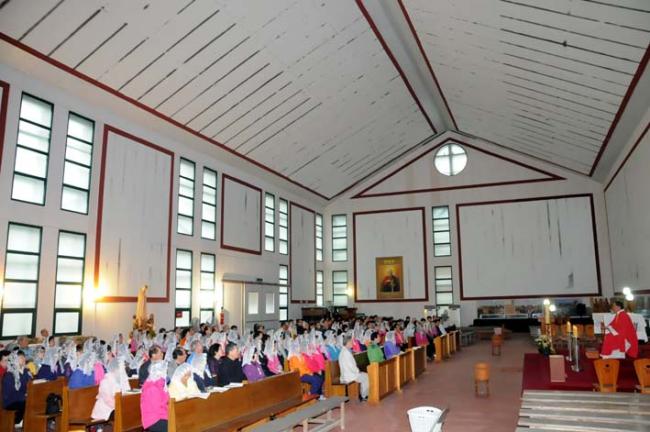 천진암 성지, 수원 안양 매곡동 성당 80명, 안동, 화령동성당 150명, 대전 모산동 성당 80명 외, 주일 낮 12시 순례객 미사(2012.04.22. 일)