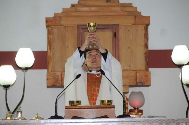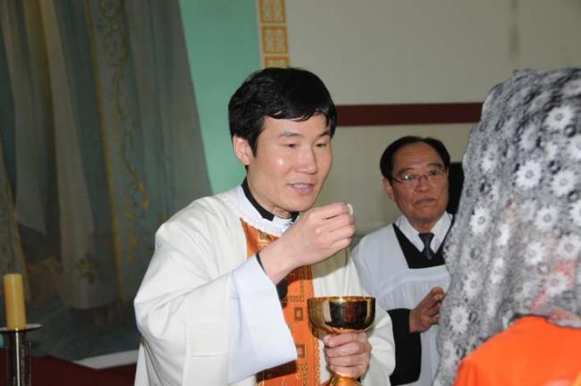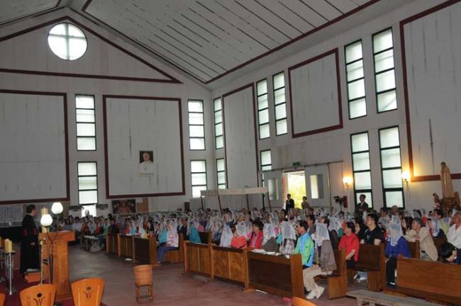 천진암 성지, 인천 가정동 성당 40명, 청주, 충주 엄정공소 25명 주일 낮 12시 순례객 미사(2012.04.29)