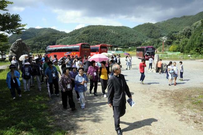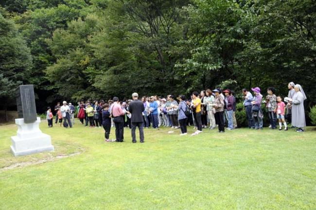 천진암 성지 주임 김학렬 신부님, 12시 순례객 미사 후 5위 성현 묘 참배, 의정부 교구 전곡성당 105명 외(2012.09.08, 토, 묘역 참배하러 가는 모습)