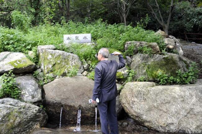 천진암 성지 주임 김학렬 신부님, 12시 순례객 미사 후 5위 성현 묘 참배, 의정부 교구 전곡성당 105명 외(2012.09.08, 토, 빙천수를 마시는 김학렬 신부님)