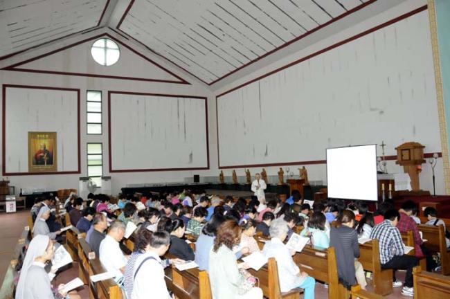 천진암 성지 주임 김학렬 신부님, 12시 순례객 미사 후 5위 성현 묘 참배, 의정부 교구 전곡성당 105명 외(2012.09.08, 토, 미사에 앞서서 천진암 강학을 스크린으로 설명)