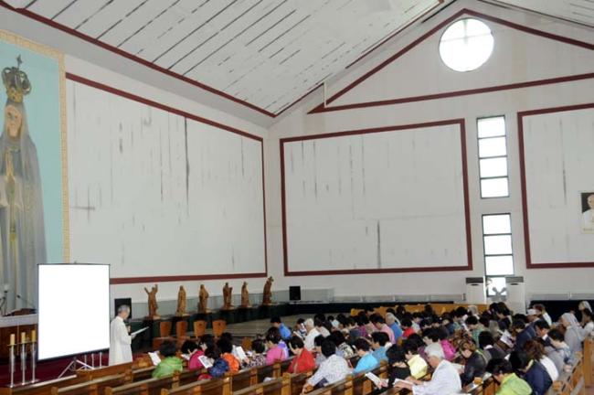 천진암 성지 주임 김학렬 신부님, 12시 순례객 미사 후 5위 성현 묘 참배, 의정부 교구 전곡성당 105명 외(2012.09.08, 토, 강론을 하시는 김학렬 신부님)