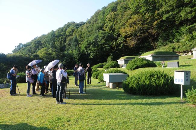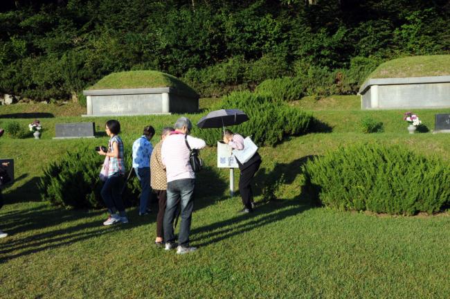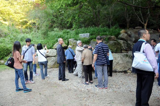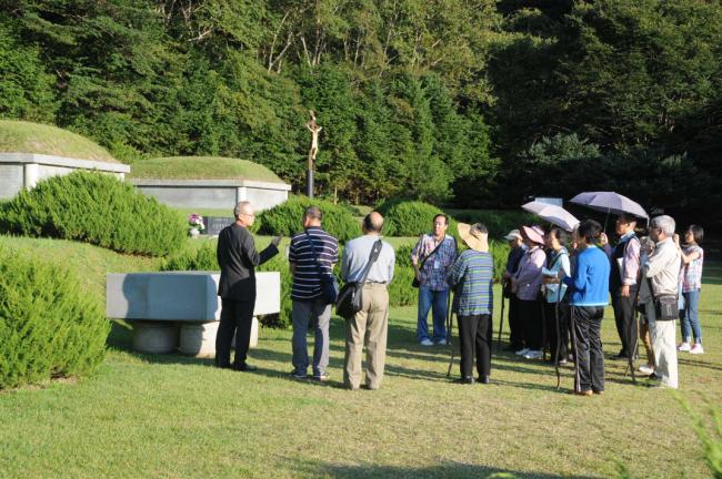 홍콩 신자 25명 성지 순례(도밍고회 Yuk Wa Christopher 신부)2012.09.24(성지 주임 김학렬 신부님이 5위 성현묘 앞에서 설명)