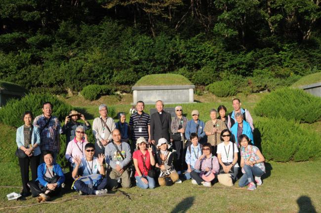 홍콩 신자 25명 성지 순례(도밍고회 Yuk Wa Christopher 신부)2012.09.24(성지 주임 김학렬 신부님이 5위 성현묘 앞에서 기도)