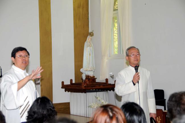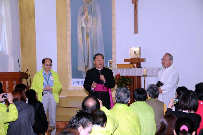 홍콩 天主敎 聖本篤堂(베네딕도 성당) LI CHI YUEN 신부와 신도 45명 천진암 성지 순례(2012.10.01)시, 성지 주임 김학렬 신부님이 성지 안내를 영어로 설명하자, 동행한 홍콩 LI CHI YUEN 신부님이 통역