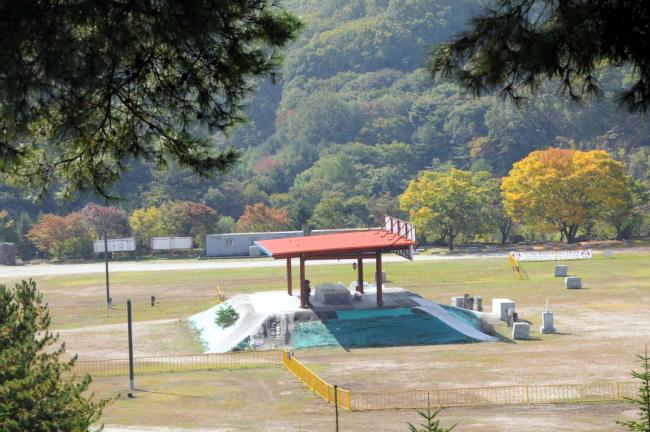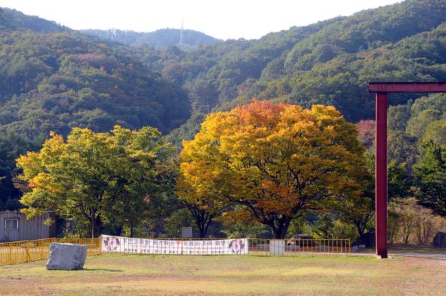 천진암 성지, 대성당 터의 제단뒤쪽의 청단풍나무들(2012.10.09)