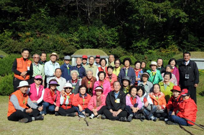 서울, 공항동 성당 평화 노인대학 68명 외, 천진암 성지 순례시, 한국천주교회 창립성현 5위 묘 참배후, 단체 기념 사진(2012.10.12)