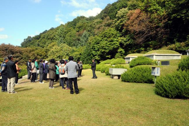 서울, 공항동 성당 평화 노인대학 68명 외, 천진암 성지 순례시, 한국천주교회 창립성현 5위 묘 참배(2012.10.12)