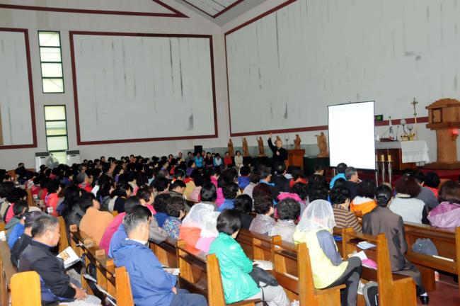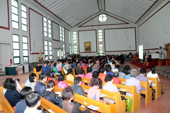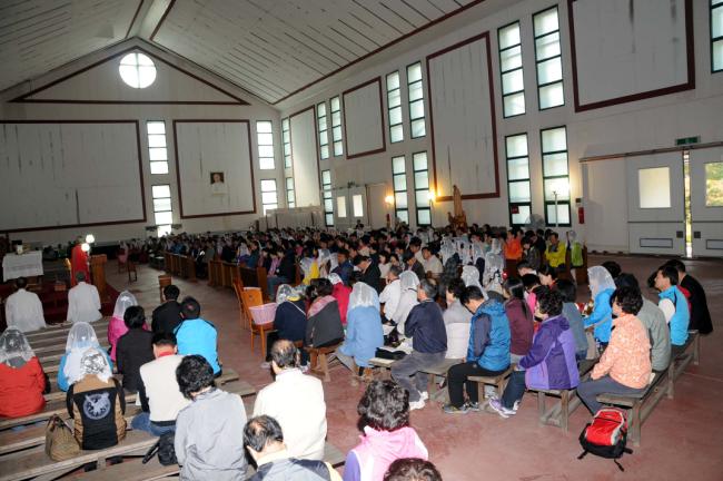 서울, 수색성당 120, 오금동 성당 30, 고덕동 성당 25, 수원, 반월성 성당 30명, 성남 빈첸시오 30명, 부천 상1동 성당 30명 외, 낮12시 주일 순례객 미사(2012.10.14, 주일)