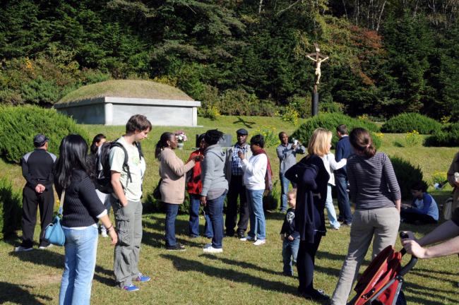 파리외방전교회 홍세안 신부 외 90여명, 천진암 성지 순례시, 변기영 몬시뇰과 공동 주례, 주일미사후, 한국천주교회창립성현 5위 묘 참배(2012.10.14,주일)