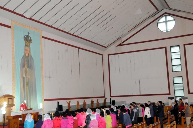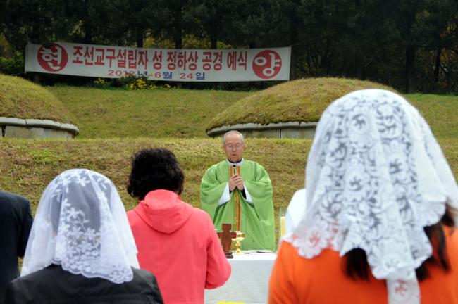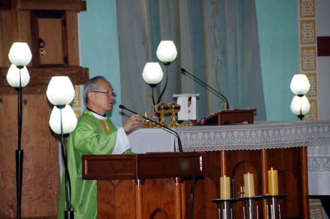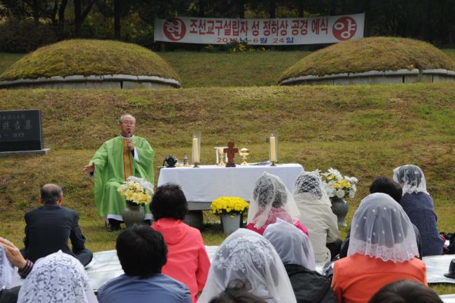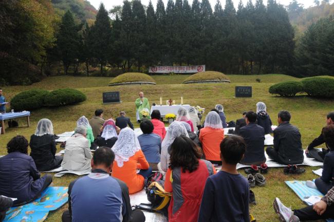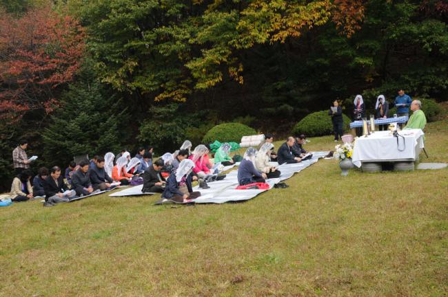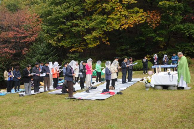 천진암 성지 주임 김학렬 신부, 순례객 주일 낮 12시 미사(서울, 월곡동성당45명, 서울, 대방동성당30명, 고덕동30명 외, 2012.10.21)