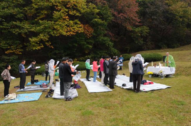천진암 성지 주임 김학렬 신부, 순례객 낮 12시 미사(대구 두류성당 연령회 80명 외, 2012.10.22)