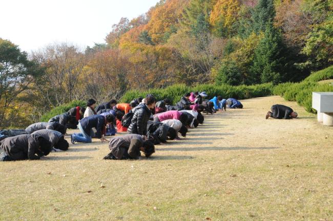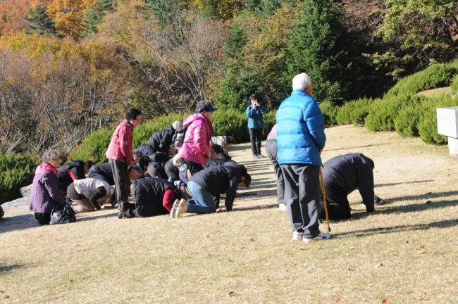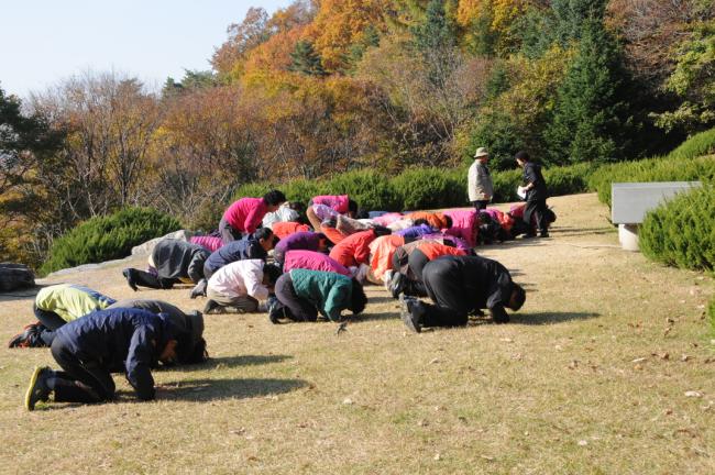 광주대교구, 평동성당(박옥규신부)66명, 한국천주교회창립성현 5위 묘 참배 후 큰절(2012.10.31)
