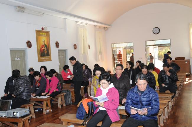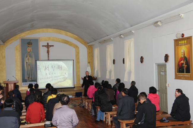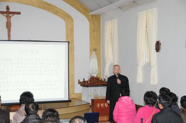 천진암성지, 낮 12시 순례객 미사 전에, 성지 주임 김학렬 신부 천진암 강학(대전, 복수동 성당 바오로회 33명 외, 2012.11.03)