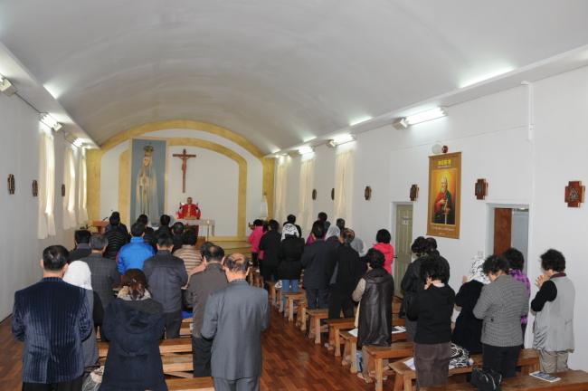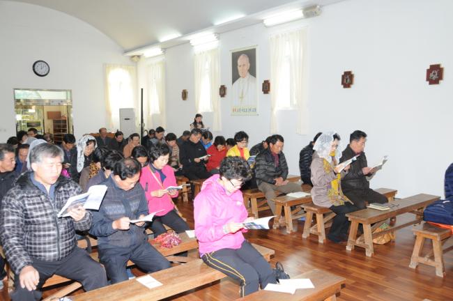천진암성지, 낮 12시 순례객 미사, 성지 주임 김학렬 신부(대전, 복수동 성당 바오로회 33명 외, 2012.11.03)