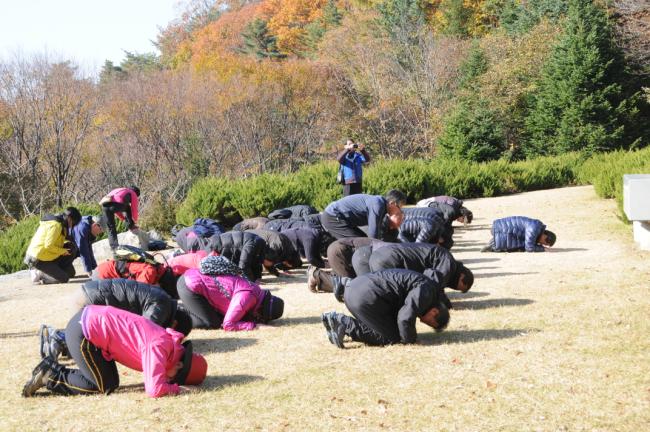대전, 복수동 성당 바오로회, 천진암성지 순례, 한국천주교회 창립성현 5위 묘 참배후 큰절(2012.11.03)